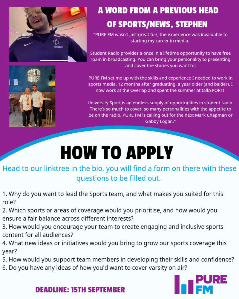 Head of Sports: https://tally.so/r/wLeqK2 - Deadline 17th October