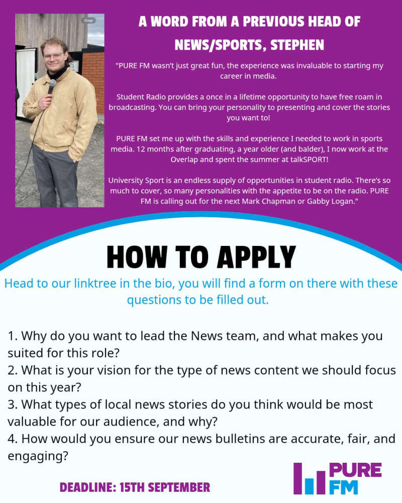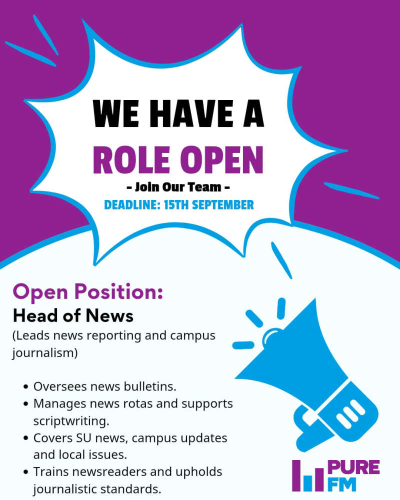 As well as our new positions you can join the society for the 2025 academic year via the Students Union website here, whether you're behind the mic or behind the scenes there'll be a role for you!